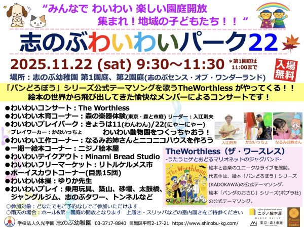 <地域>11/22(土)開催「志のぶわいわいパーク22」に TheWorthless が出演!