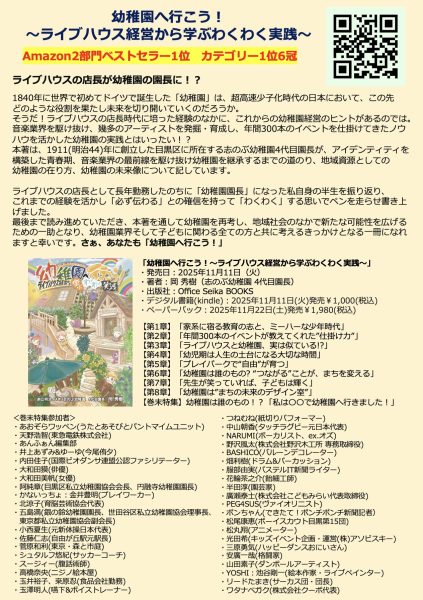 <書籍>11/11発売 岡秀樹園長著『幼稚園へ行こう!〜ライブハウス経営から学ぶわくわく実践〜』 Amazon2部門でベストセラー1位+カテゴリ1位6冠を獲得!